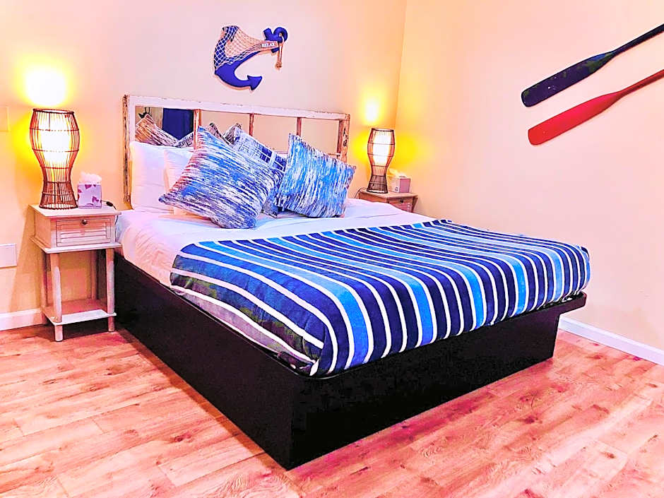 This 1 Bed Room Suite "HideAway" is a spacious, Non-Smoking room that can accommodate 2 adults and 1 child. This room type is provided for comfort for both leisure and business travelers while visiting Monterey. A kitchenette is provided in this family-sized room and provides all amenities for a comfortable and stress-free stay. The amenities include pots and pans, silverware, a coffee/tea maker, a microwave, and a full-sized refrigerator. Other Amenities include complimentary toiletries, hairdryer, plush towels, work desk, and free WIFI. The unit consists of King Room, A Living Room with a Sofa bed with a Common Walk-In Shower. Open the Sliding Doors from the living room to enter into your Hidden Patio. Grab a book or glass of wine while hearing the seals barking and the ocean waves roaring.
