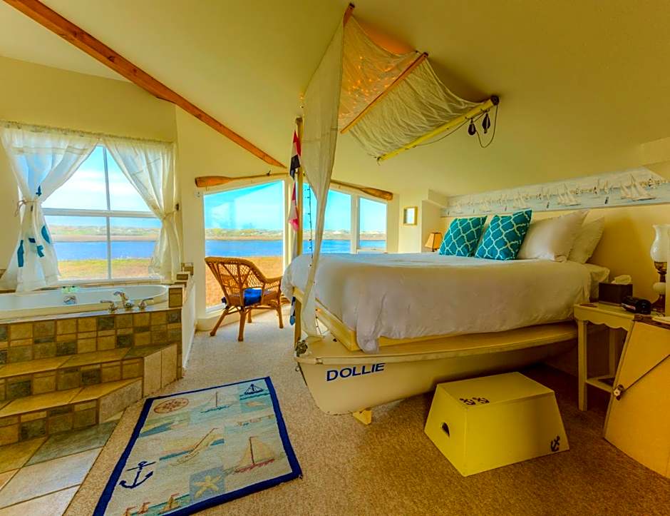 Offering free WiFi, these deck rooms feature an over-sized 2-person shower with 2 spray heads and a view of the slough. All rooms are filled with coastal décor and gas fireplaces. They have antique wardrobe closets and a desk. Rooms offer views and include uniquely designed handcrafted beds. All rooms include a flat-screen TV, binoculars and plush robes.